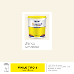 VINILO TIPO 1 BASE AGUA BLANCO GALON REPYNTA El Vinilo Tipo 1 base agua ofrece una solución de calidad para renovar tus espacios. Con su acabado duradero y resistente, brinda una aplicación fácil tanto en interiores como exteriores. Su alta cobertura y excelente adherencia garantizan resultados impecables. Disfruta de una amplia gama de beneficios, como la durabilidad, la facilidad de uso y la capacidad de transformar tus ambientes con estilo. Renueva tus paredes con confianza, sabiendo que estarás utilizando un producto de calidad que se adapta a tus necesidades estéticas y funcionales.