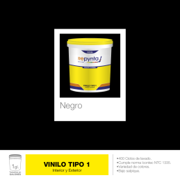 VINILO TIPO 1 BASE AGUA BLANCO GALON REPYNTA El Vinilo Tipo 1 base agua ofrece una solución de calidad para renovar tus espacios. Con su acabado duradero y resistente, brinda una aplicación fácil tanto en interiores como exteriores. Su alta cobertura y excelente adherencia garantizan resultados impecables. Disfruta de una amplia gama de beneficios, como la durabilidad, la facilidad de uso y la capacidad de transformar tus ambientes con estilo. Renueva tus paredes con confianza, sabiendo que estarás utilizando un producto de calidad que se adapta a tus necesidades estéticas y funcionales.