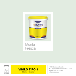 VINILO TIPO 1 BASE AGUA BLANCO GALON REPYNTA El Vinilo Tipo 1 base agua ofrece una solución de calidad para renovar tus espacios. Con su acabado duradero y resistente, brinda una aplicación fácil tanto en interiores como exteriores. Su alta cobertura y excelente adherencia garantizan resultados impecables. Disfruta de una amplia gama de beneficios, como la durabilidad, la facilidad de uso y la capacidad de transformar tus ambientes con estilo. Renueva tus paredes con confianza, sabiendo que estarás utilizando un producto de calidad que se adapta a tus necesidades estéticas y funcionales.