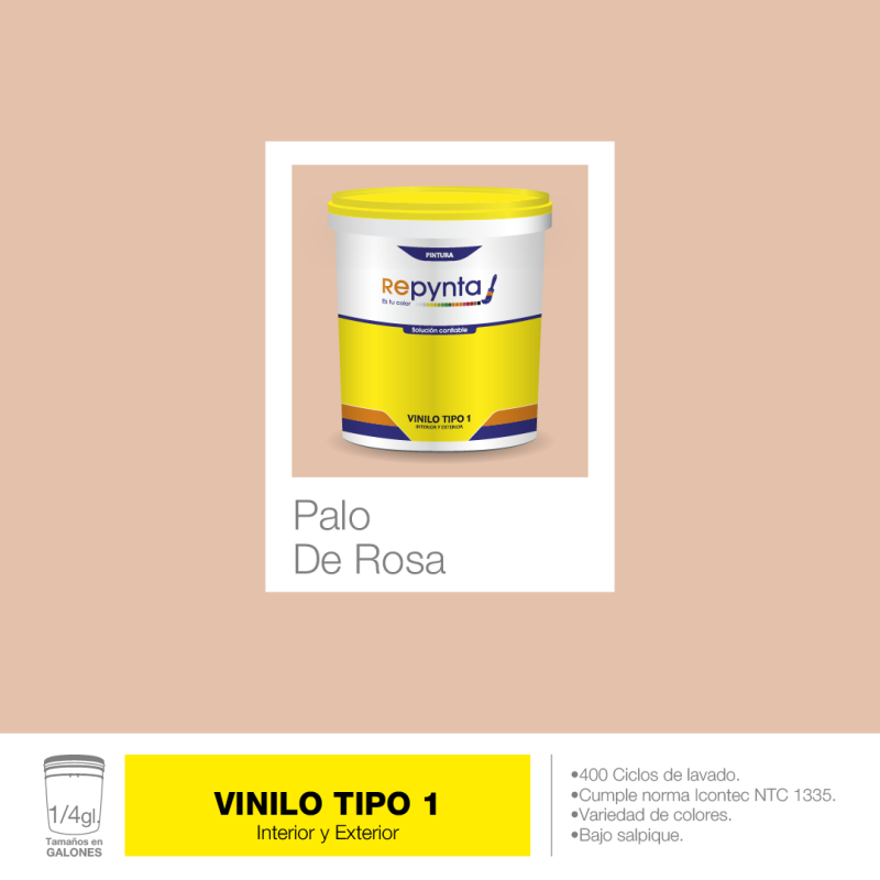 COLOR DE VINILO EN BASE AGUA TIPO 1 (1/4 DE GALÓN)