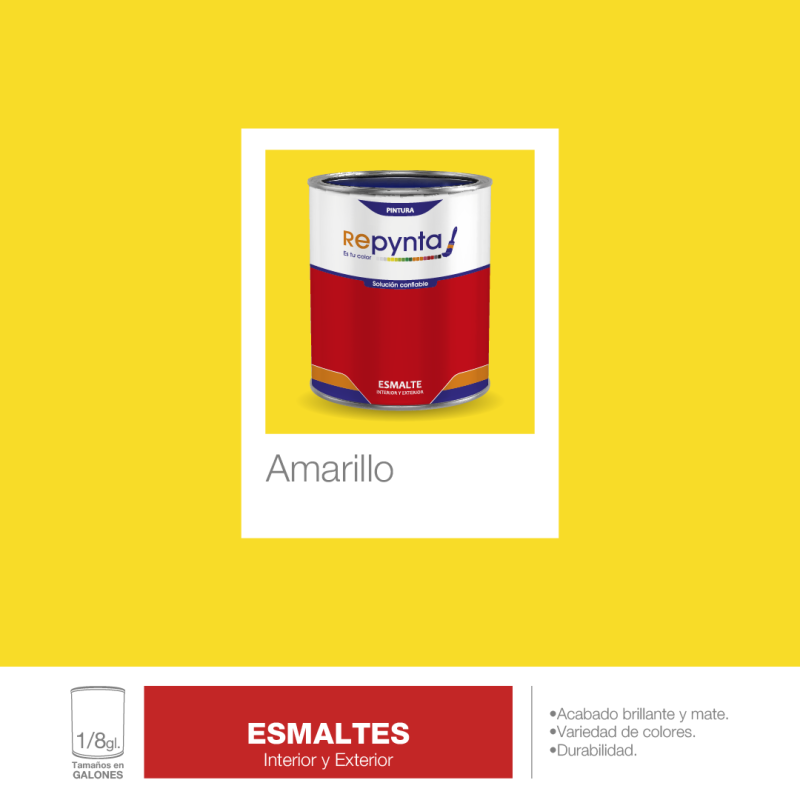ESMALTE BLANCO OCTAVO GALON REPYNTA El Esmalte Repynta es la elección ideal para darle un acabado duradero y elegante a tus proyectos. Con su fórmula de alta calidad, proporciona una cobertura excelente y un color blanco brillante que realza cualquier superficie. Además, su resistencia al desgaste y a las manchas garantiza una apariencia impecable a largo plazo. Fácil de aplicar, se seca rápidamente, ahorrando tiempo y esfuerzo. Disfruta de los beneficios de un esmalte confiable y duradero, que transforma tus espacios con estilo y calidad. Dale a tus superficies un aspecto renovado y profesional con el Esmalte Repynta.