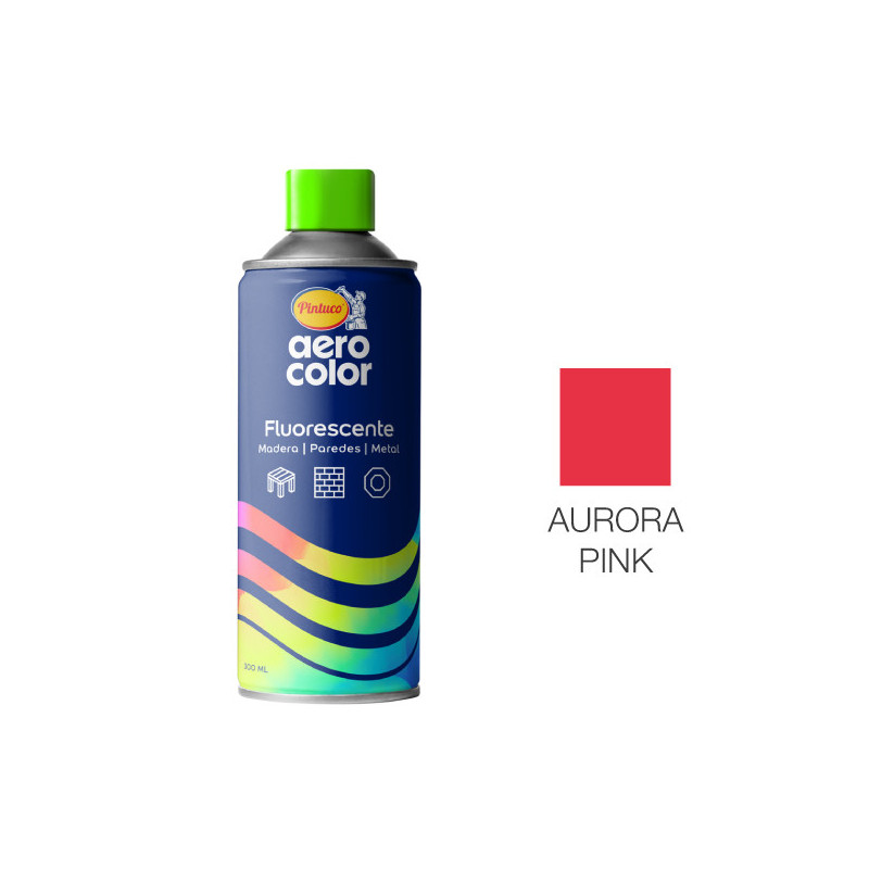 Información General Aerocolor Pintura Fluorescente en Aerosol se usa en superficies como madera, metal, cartón o paredes, es ideal para elaborar avisos publicitarios y señales de seguridad. De colores vivos que dan brillo y proporcionan mayor visibilidad, con alto cubrimiento, alto rendimiento, mayor duración y un rápido secamiento. Para uso en interiores y exteriores Recomendado para aplicar como base y acabado final en superficies interiores y exteriores bajo techo tales como mampostería, concreto, estuco, ladrillo, madera, entre otros. Beneficios Estos son algunos de los beneficios que te ofrece Aerocolor Pintura Fluorescente en Aerosol: Aerosol: Colores vivos. Brillo y mayor visibilidad. Alto cubrimiento y alto rendimiento. Rápido secamiento Para uso en interiores y exteriores. Colores Haz clic y descarga la carta de color Prepara la Superficie: La superficie que vas a pintar debe estar seca, libre de mugre, polvo, óxido y grasa. Si la vas a aplicar sobre una superficie ya pintada te recomendamos lijar y remover la pintura existente para obtener una mejor adherencia. Te recomendamos aplicar previamente una base blanca para que el color resalte. Prepara el producto: Invierte el envase y agítalo 1 minuto aprox. hasta que suene el balín. Hazlo antes y durante la aplicación. Realiza una prueba para verificar el color que deseas usar, aplicando sobre otro material. Aplica el producto: Aplica la pintura a 30 cm (aprox.) de la superficie. Pinta en sentido horizontal o vertical. Hazlo por capas delgadas dejando secar entre capa y capa. Elige un lugar ventilado, sin polvo y en un día cálido. Cuando termines de pintar, invierte el aerosol y oprime el actuador hasta que sólo salga gas. En caso de que el actuador se obstruya, retíralo del aerosol y sumérgelo en thinner, luego introduce en la base y en el orificio de salida un alfiler para limpiarlo. Sobre Metal y Madera..1,5 m²/300 ml a 2 capas* *Sobre las demás superficies el rendimiento puede variar.