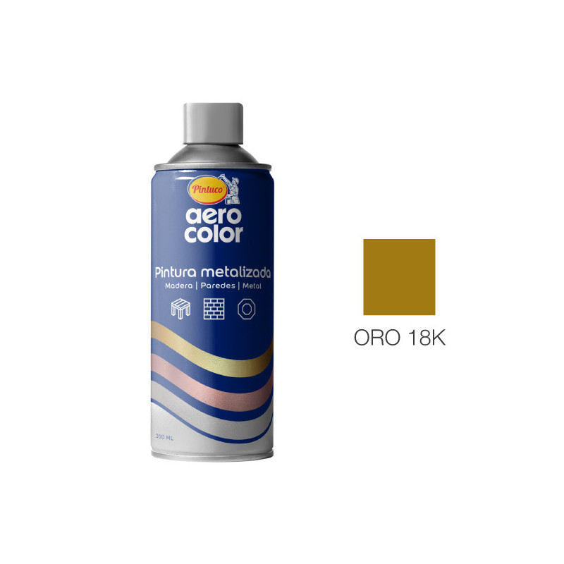 Pintura en Aerosol Metalizada ideal para madera, metal, cerámica o cartón que requieran restauración, protección y/o decoración. Con un acabado metálico uniforme, de mayor resistencia y duración con alto cubrimiento, rendimiento superior y un rápido secamiento. Para uso en interiores y exteriores. Información General Aerocolor Pintura en Aerosol Metalizada con alta adherencia y durabilidad en superficies como madera, metal, cerámica o cartón que requieran restauración, protección y/o decoración. Da un acabado metálico uniforme, de mayor resistencia y duración con alto cubrimiento, rendimiento superior y un rápido secamiento. Beneficios Estos son algunos de los beneficios que te ofrece Aerocolor Pintura en Aerosol metalizada Alta Adherencia. Mayor Resistencia y durabilidad. Alto cubrimiento. Alto rendimiento. Rápido secamiento. Para uso en interiores y exteriores. Colores Haz clic y descarga la carta de color Prepara la Superficie: La superficie que vas a pintar debe estar seca, libre de mugre, polvo, óxido y grasa. Si la vas a aplicar sobre una superficie ya pintada te recomendamos lijar y remover la pintura existente para obtener una mejor adherencia. Prepara el producto: Invierte el envase y agítalo 1 minuto aprox. hasta que suene el balín. Hazlo antes y durante la aplicación. Realiza una prueba para verificar el color que deseas usar, aplicando sobre otro material. Aplica el producto: Aplica la pintura a 30 cm (aprox.) de la superficie. Pinta en sentido horizontal o vertical. Hazlo por capas delgadas dejando secar entre capa y capa. Elige un lugar ventilado, sin polvo y en un día cálido. Cuando termines de pintar, invierte el aerosol y oprime el actuador hasta que sólo salga gas. En caso de que el actuador se obstruya, retíralo del aerosol y sumérgelo en thinner, luego introduce en la base y en el orificio de salida un alfiler para limpiarlo. Sobre Metal y Madera..1,5 m²/300 ml a 2 capas* *Sobre las demás superficies el rendimiento puede variar.